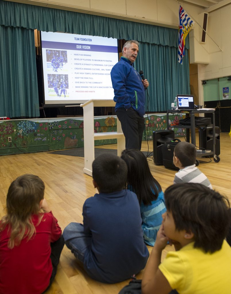 “This presentation is what I did for our team, so you are going to be part of my hockey team, part of the Vancouver Canucks today,” he told them.